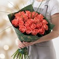 Букет из 23 розовых и белых тюльпанов
