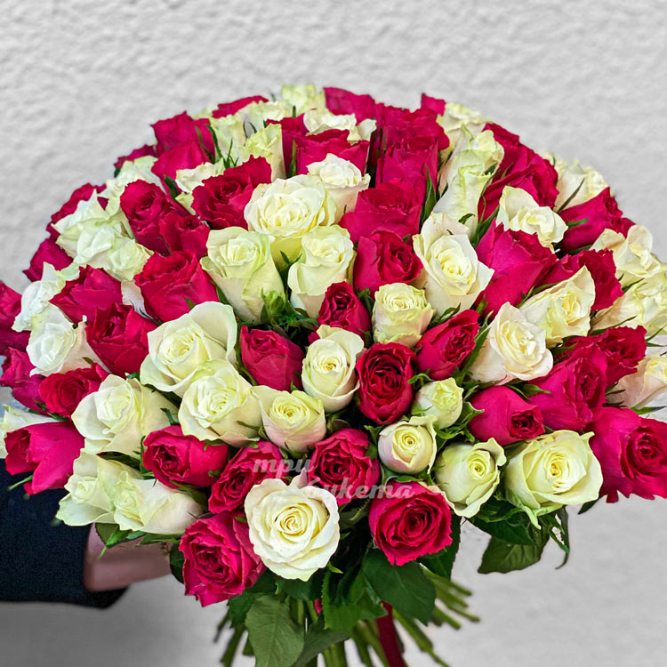 101 бело-розовая роза 50 см