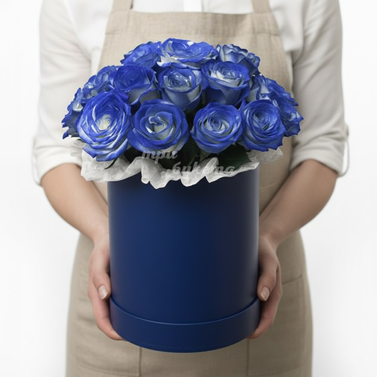 17 бело-синих роз в коробке