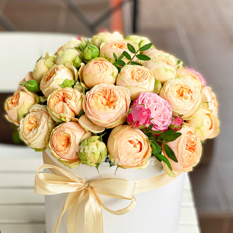 25 пионовидных роз в коробке