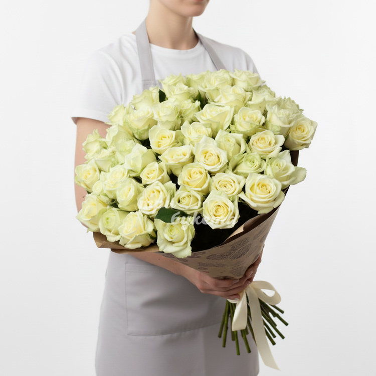 51 белая роза в крафте