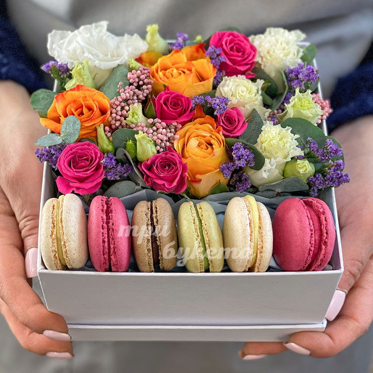 6 макарун с розами в коробке