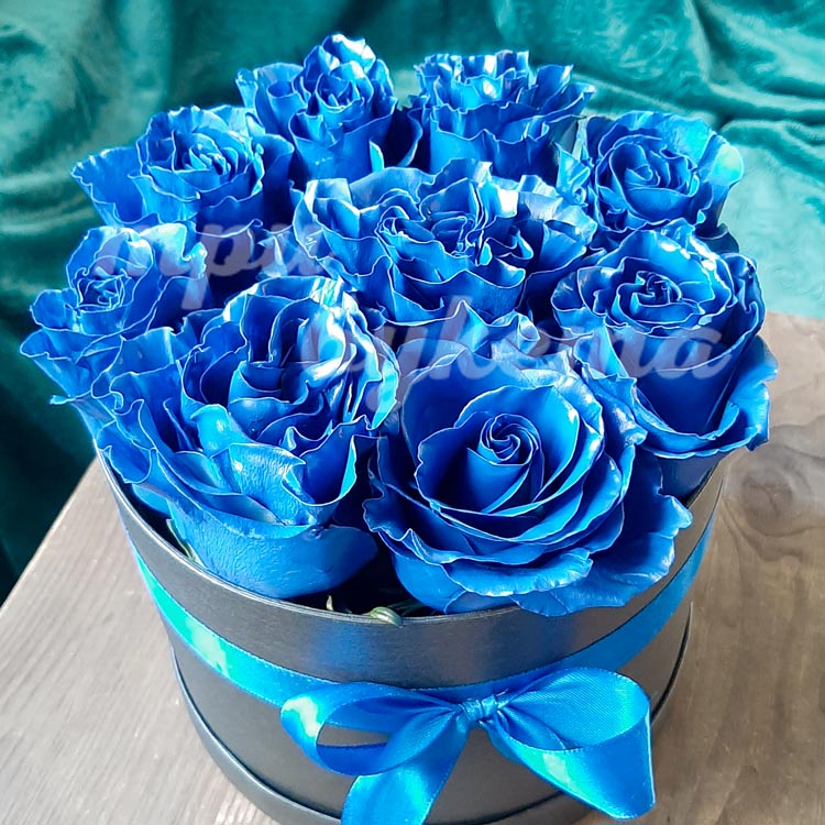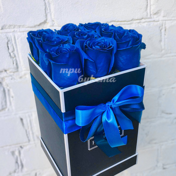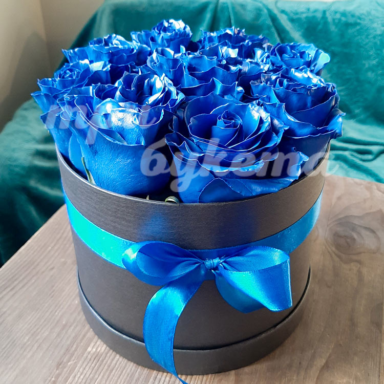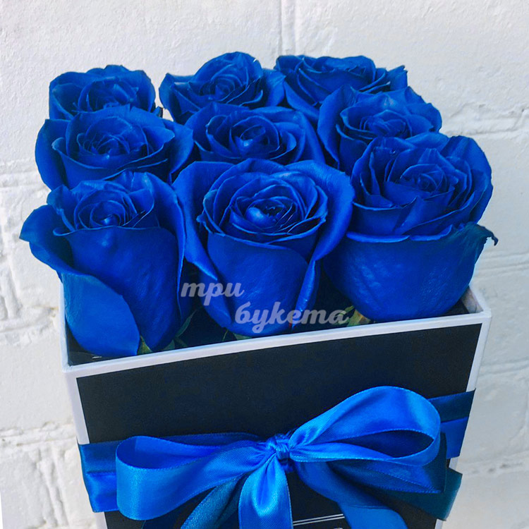 9 синих роз в коробке