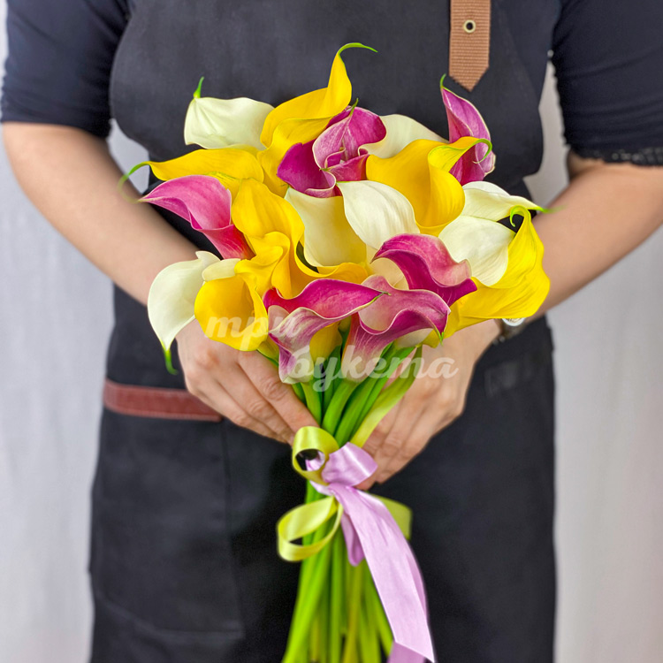 Букет из 21 разноцветных калл