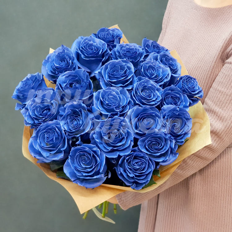 Букет из 23 синих роз в крафте