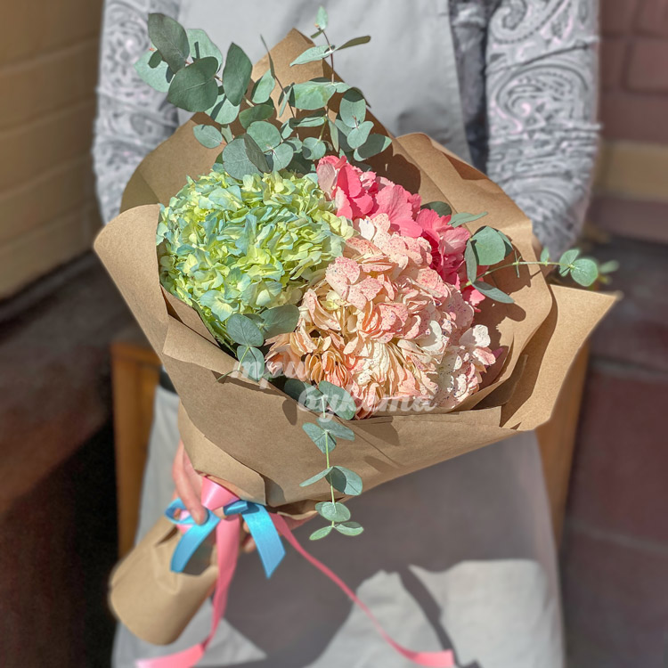 Букет из 3 разноцветных гортензий