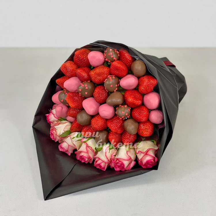 Букет из 40 клубник и 7 роз