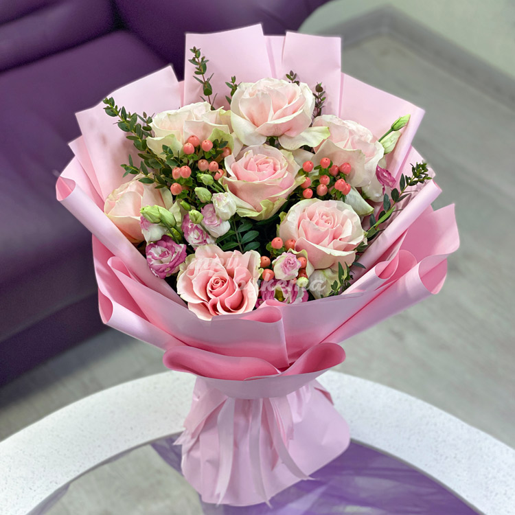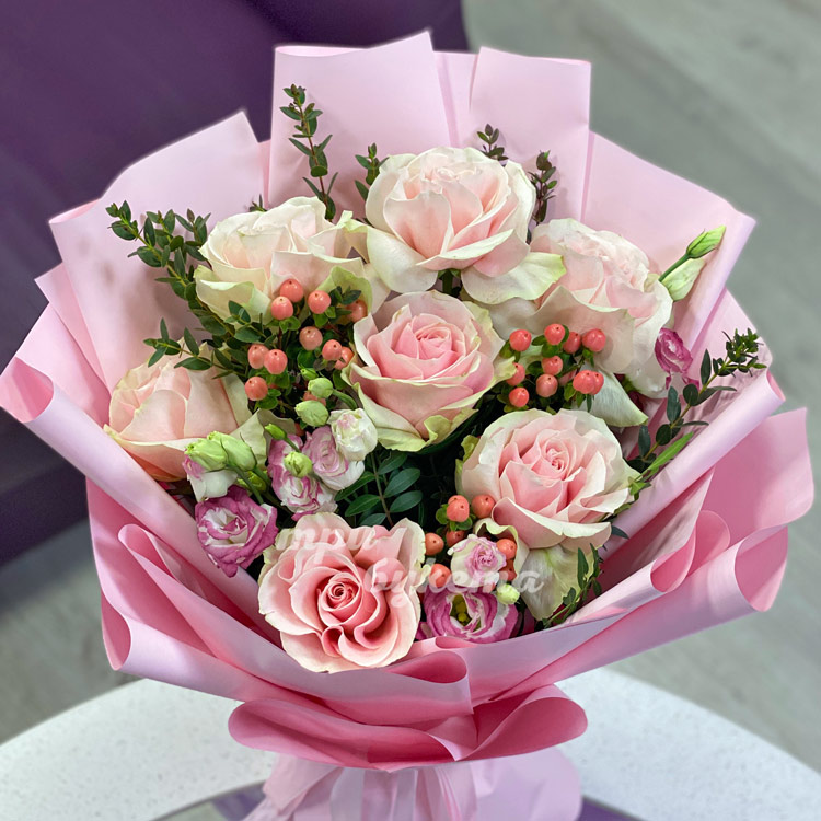 - Розовые розы, 7 шт.
