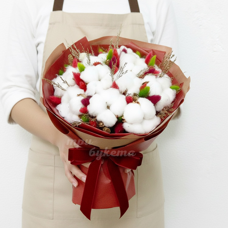 Букет из хлопка и лагуруса