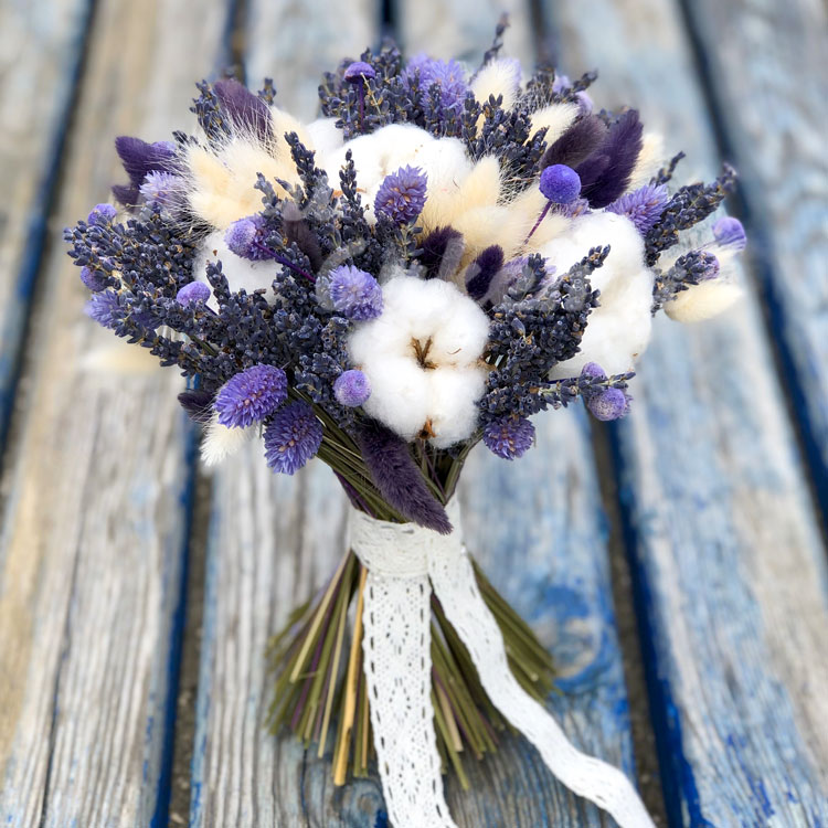 Букет из лаванды и хлопка