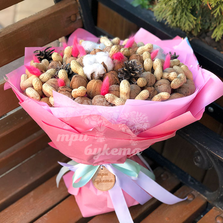 Букет из орехов и хлопка