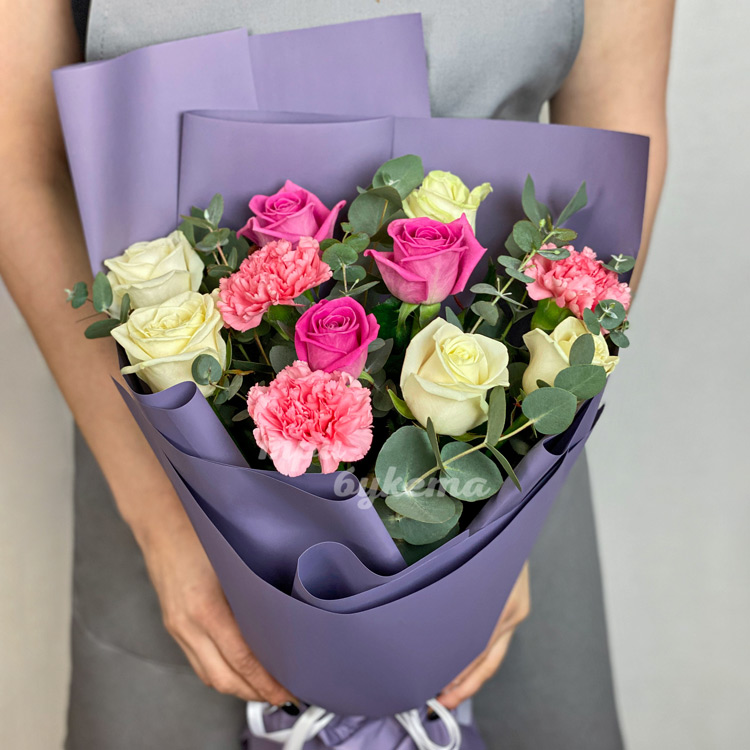 Букет из роз и диантусов