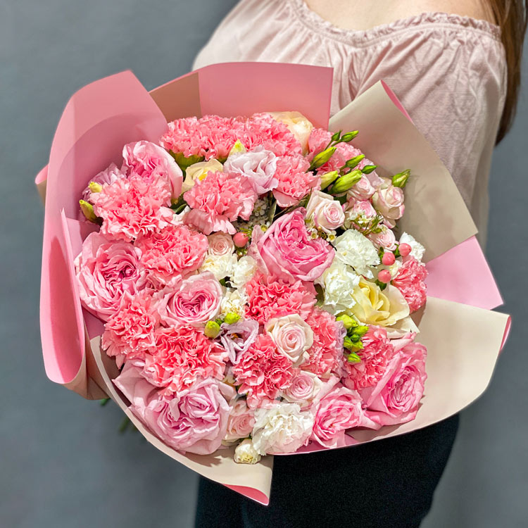 Букет из розовых и белых гвоздик