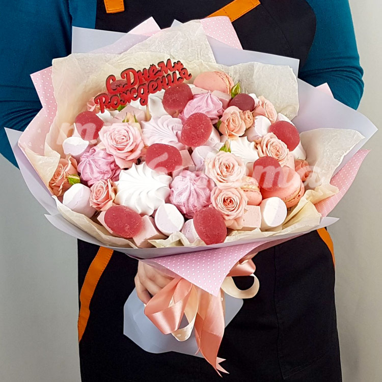 Букет из зефира и макарун