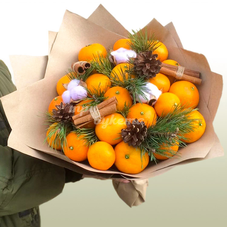 Букет мандаринов в крафте