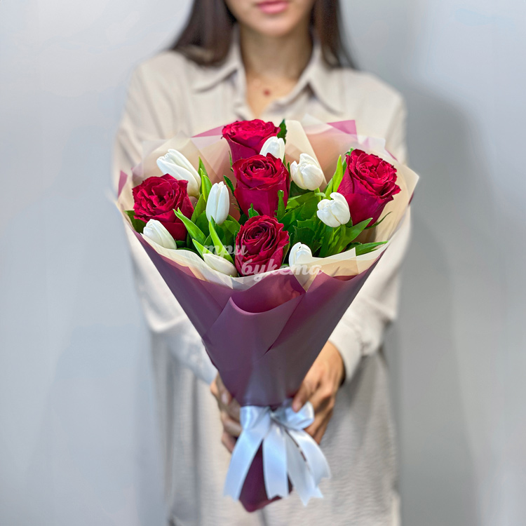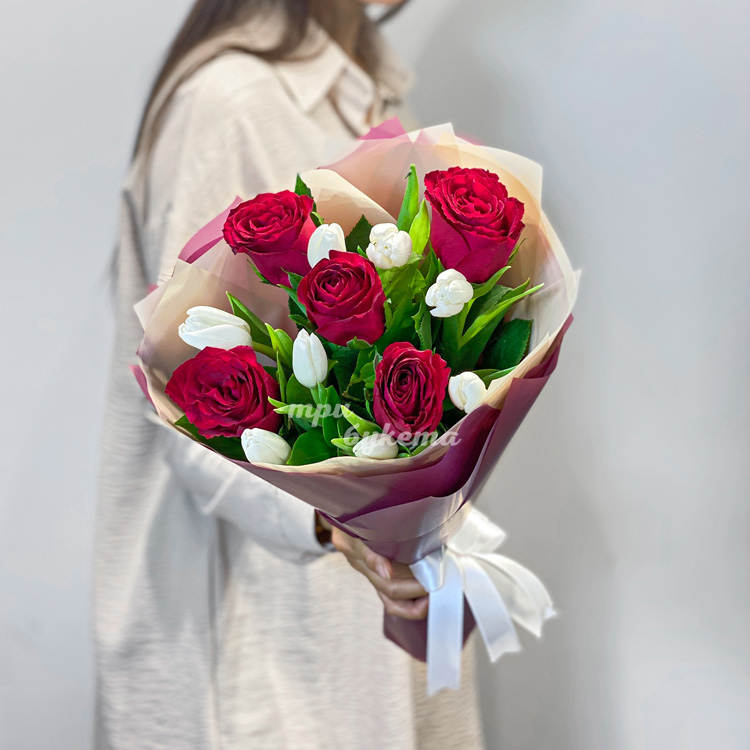 Букет роз и тюльпанов на 8 марта