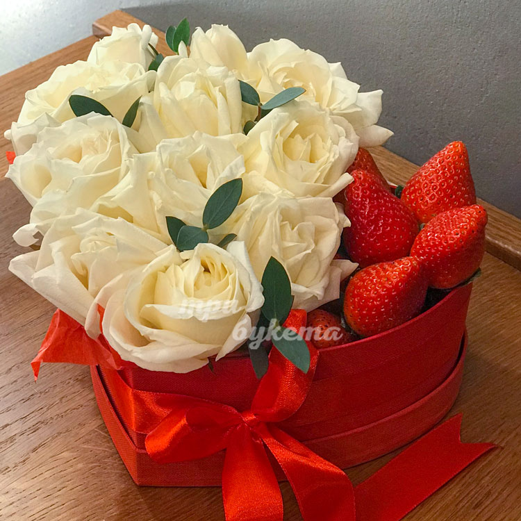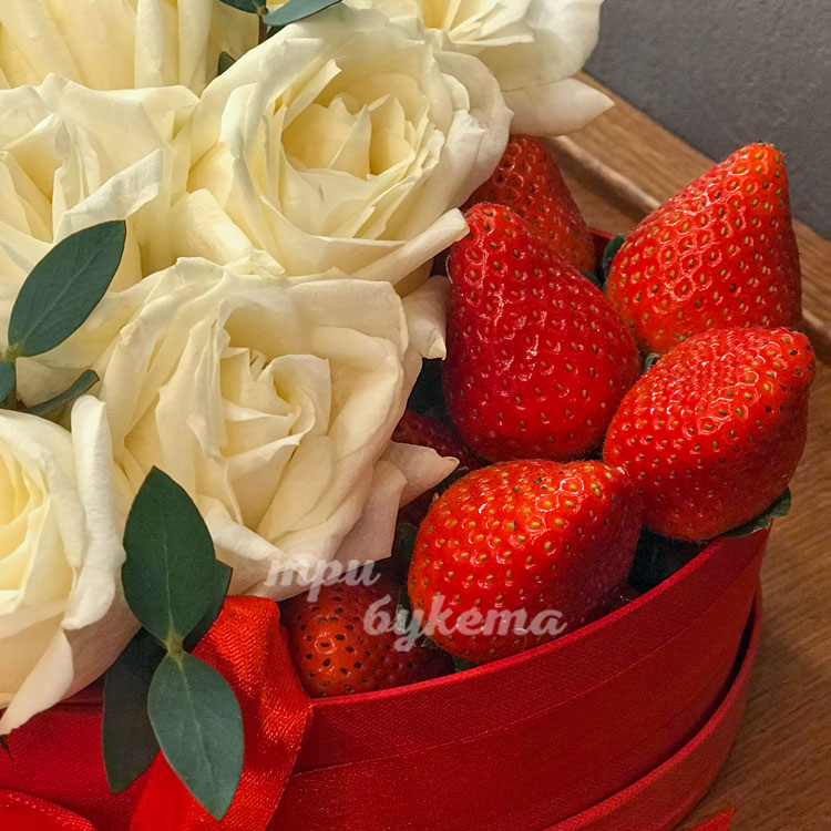 Композиция из клубники и белых роз