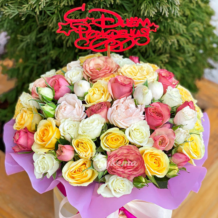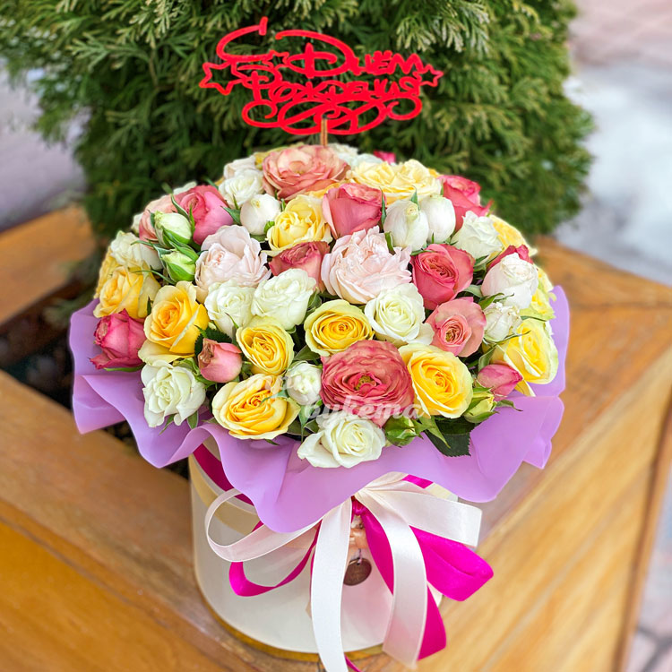 Коробка куст. роз на день рождения