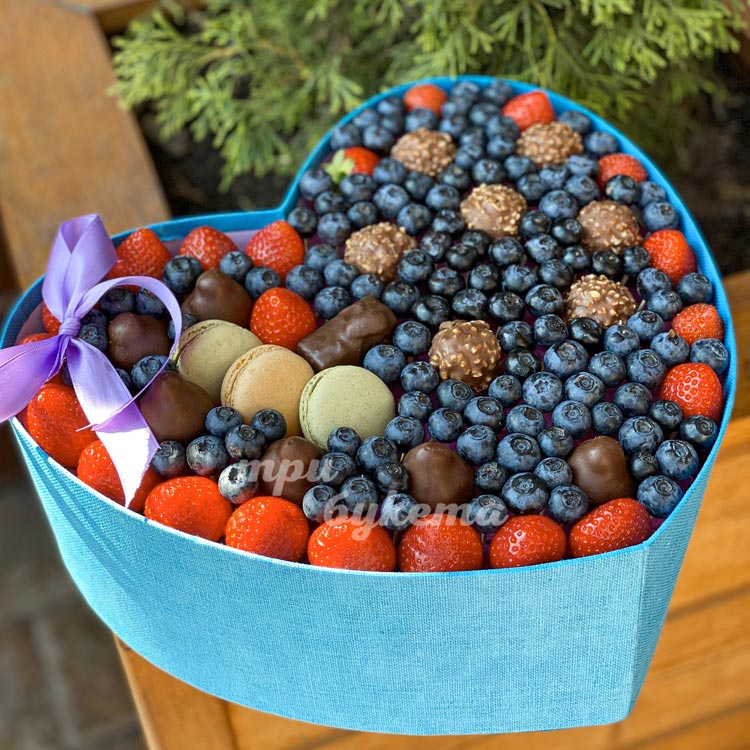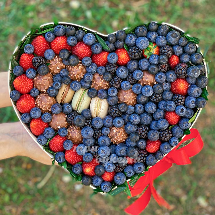 Коробка-сердце с ягодами и макарунами