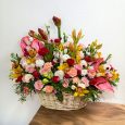 Огромная корзина ярких роз и орхидей