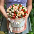 Розовая роза и гвоздики в коробке