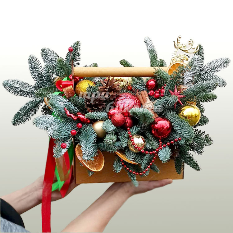 Ящичек хвойных веток и шишек