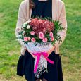 Ящик хризантем и розового лагуруса