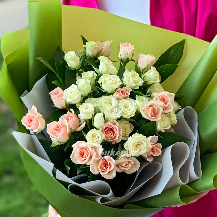Зеленый букет из 7 веток кустовых роз