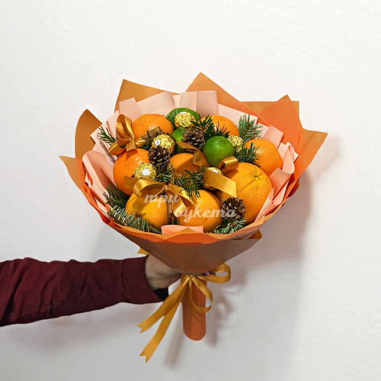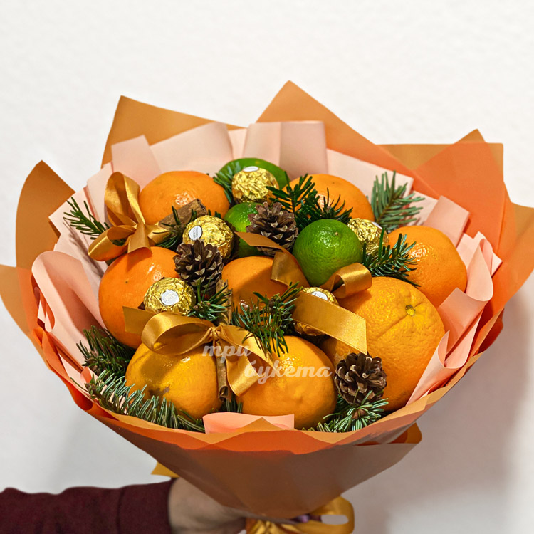 Зимний букет из мандаринов и ели